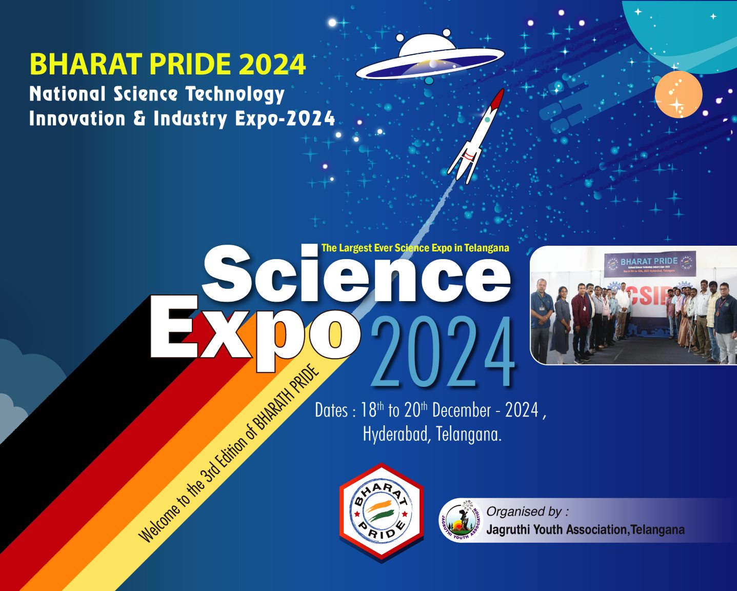 BHARAT PRIDE: Bharat Pride is a national level science promotion program, which includes National Science Technology, Innovation & Industrial Expo; Theme Seminars; Student Competitions etc., This event is a celebration of India's innovative spirit and its contributions to the world of science and technology. This Bharat Pride expo brings together the brightest minds from R&D sector, academia, industry and government R & D Organisations to showcase their latest innovations and products.